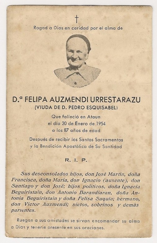 –Larburun jaio eta Ertzillegin bizi zen Felipa Antonia Auzmendi hil zen.